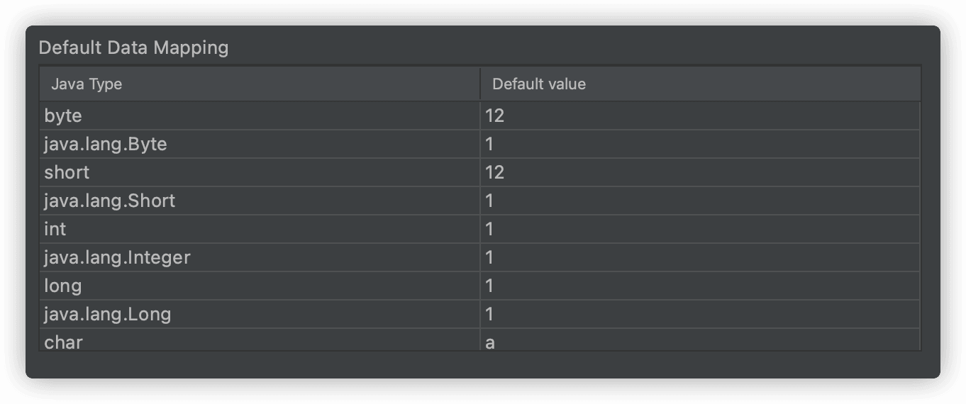 Default type mapping