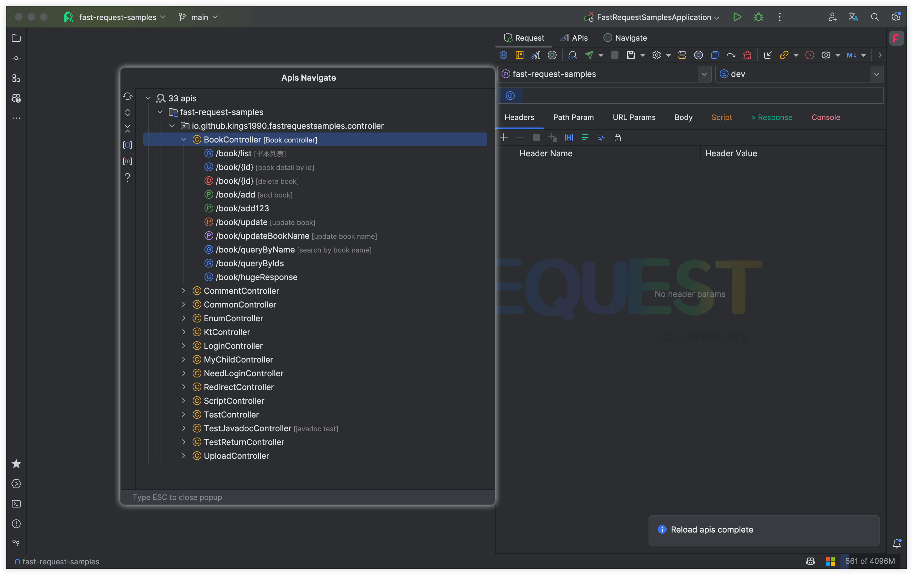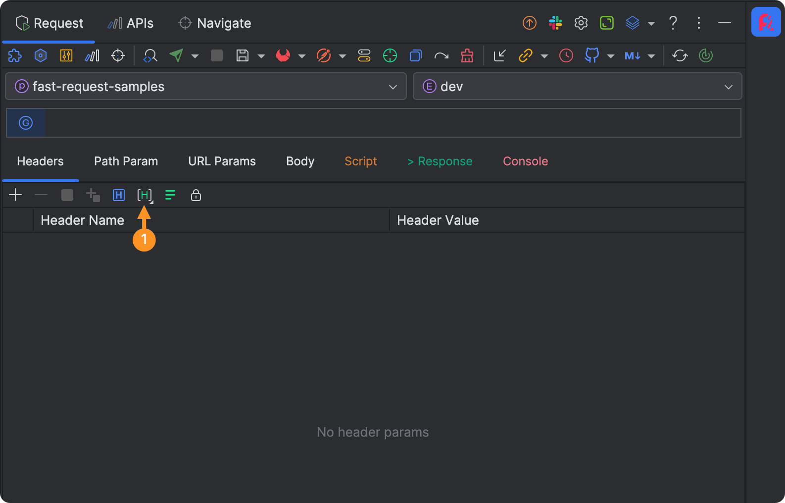 2.Switch the environment or project name directly, and then enter the corresponding key and value values in the headers form