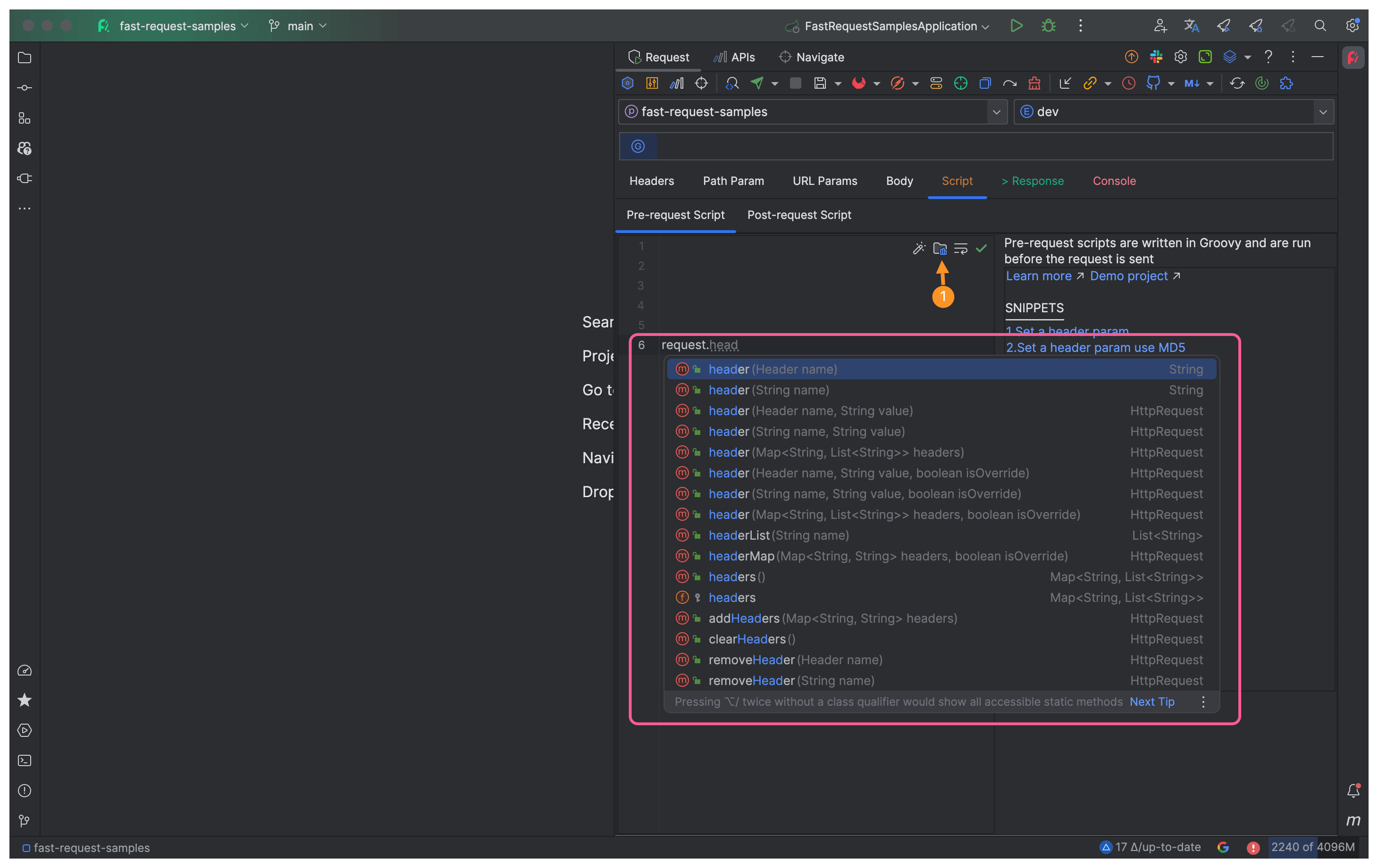 Support quickly locate the field key in the list, after entering the keyword, you can quickly locate the corresponding field by pressing the arrow keys. This feature is supported in Headers, Path Params, URL Params, Form URL-Encoded, Form-data tabs.