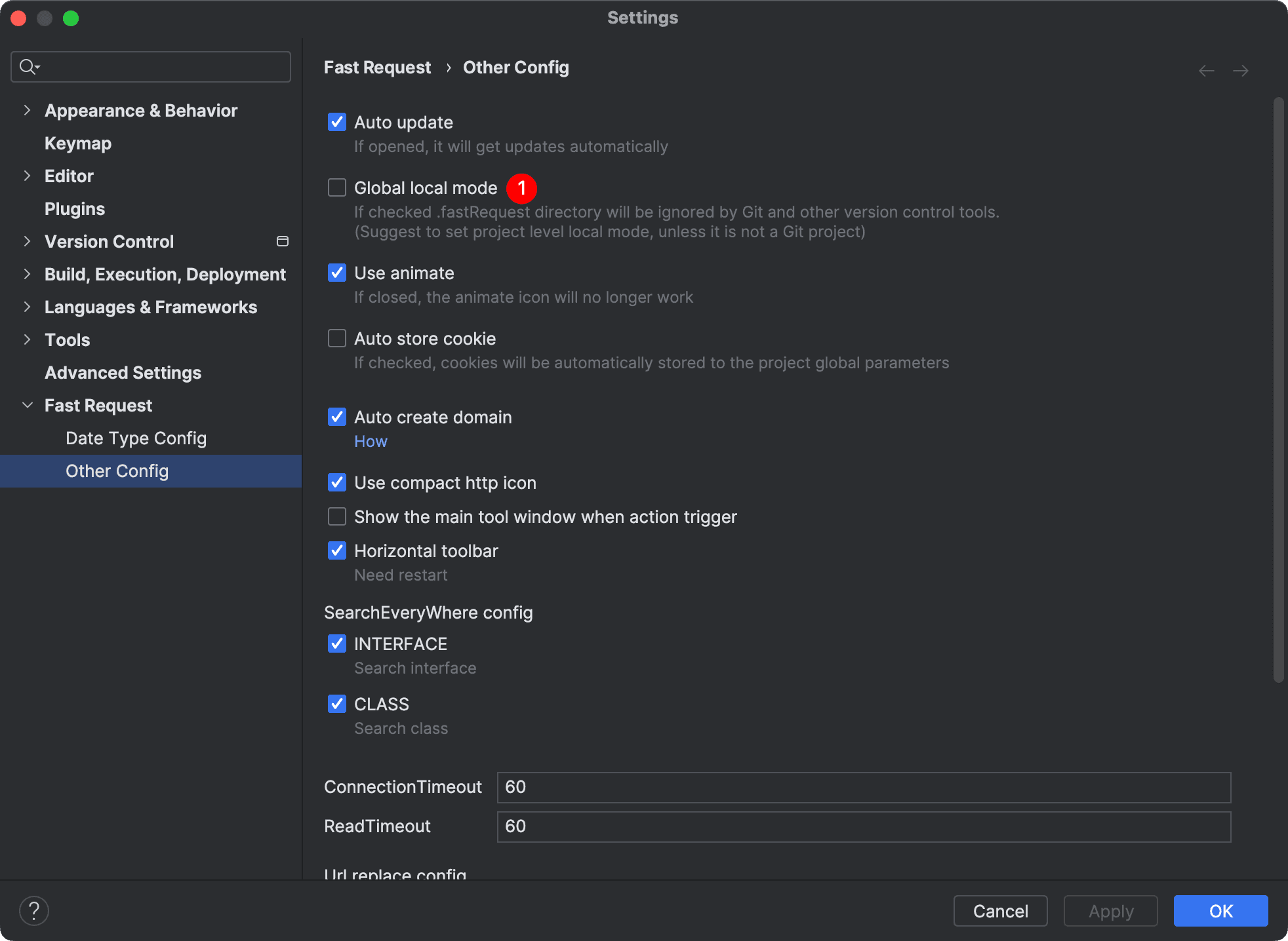 In global local mode, .fastRequest directory is ignored and made invisible, which is consistent with Solution 1 in How to ignore .fastRequest directory. It is suitable for non-git projects.