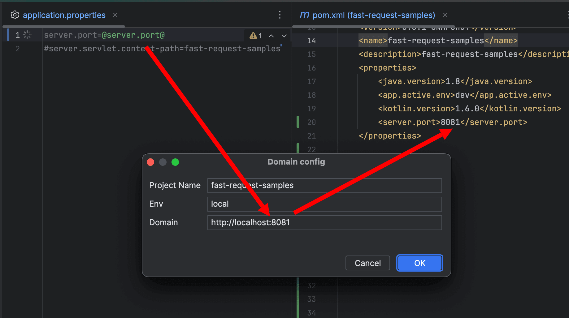 When generating domain, it supports scanning variables in pom.xml, such as ${server.port}.