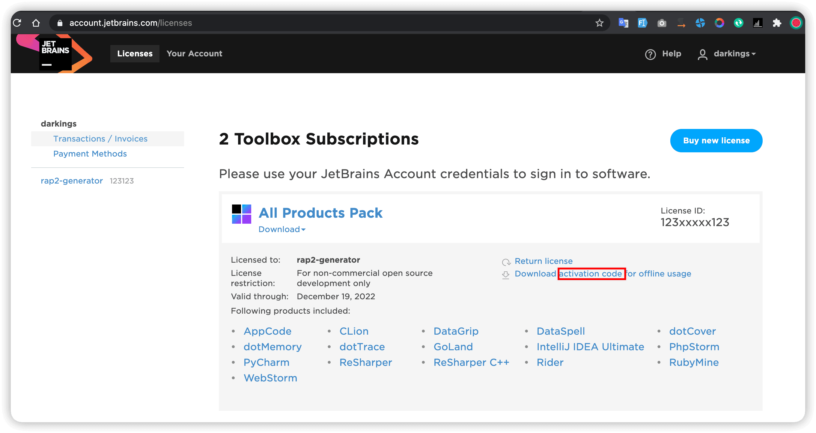 注册 jetbrains 账号购买方式可以方便后续找 license,且不容易丢失