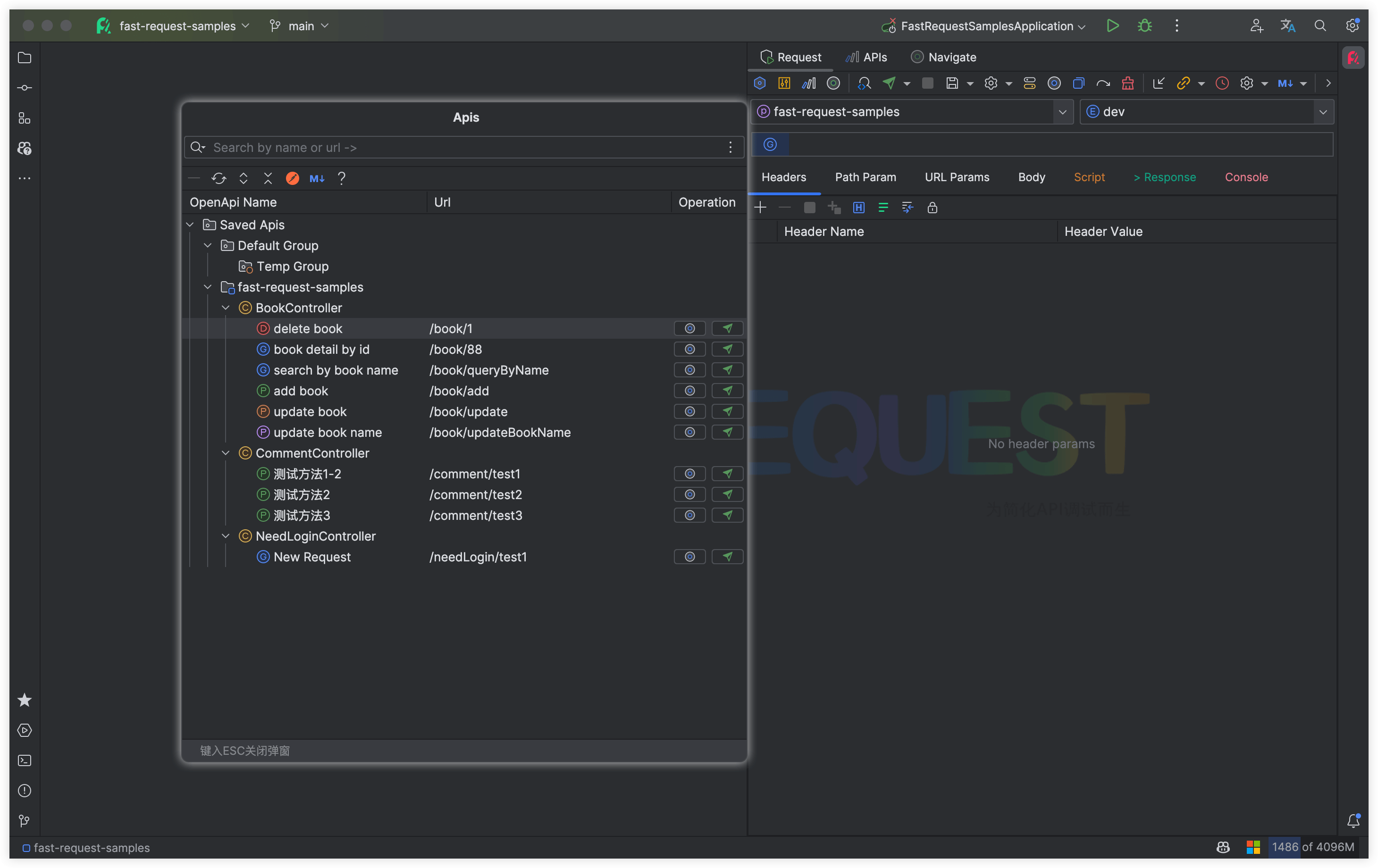 - 将发送请求按钮至工具栏同时支持快捷键