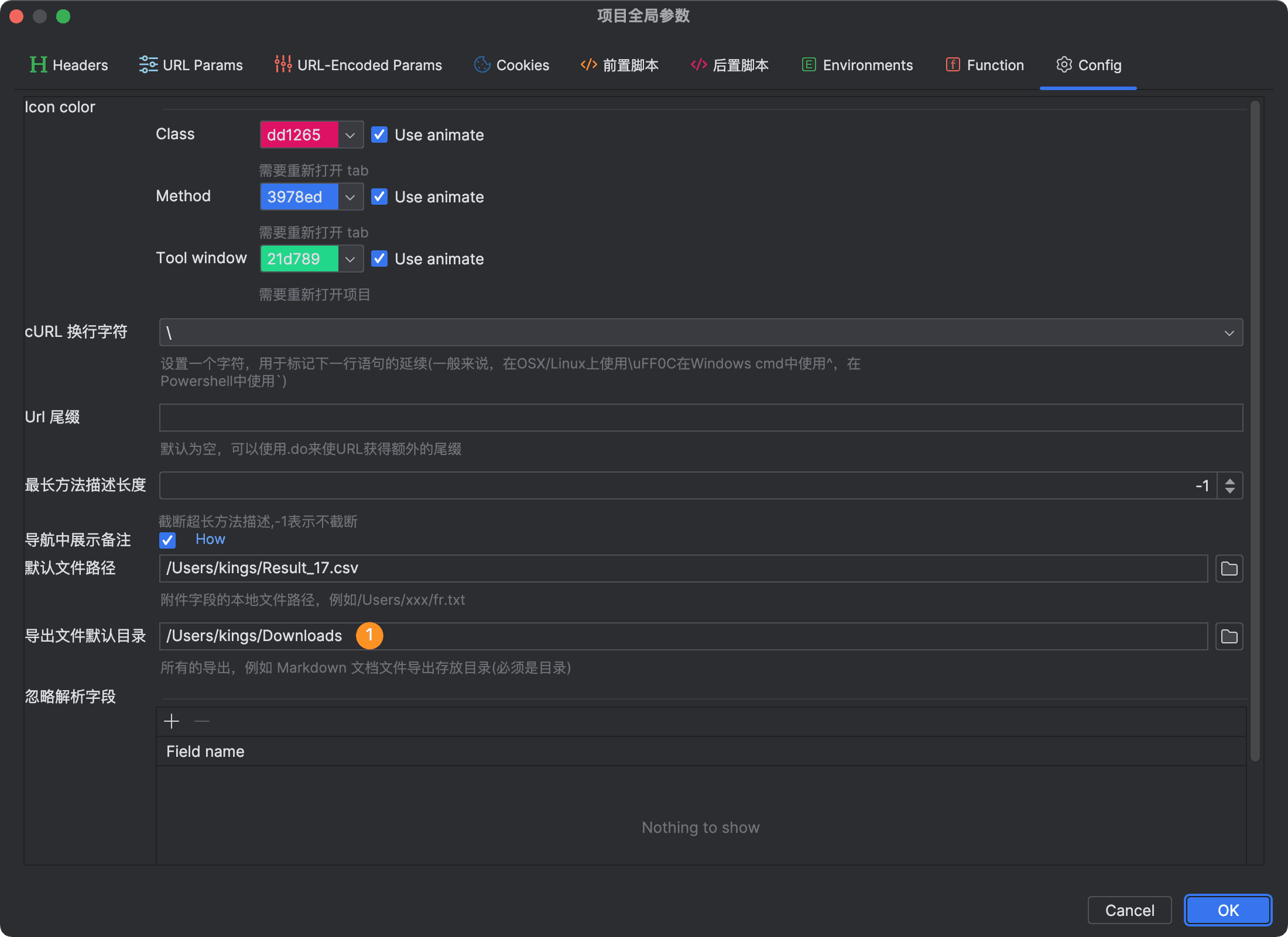 针对一些全局都不希望生成参数的字段,可以通过选择并快速添加到忽略字段解析配置。更多字段忽略字段的方法,请查看字段解析