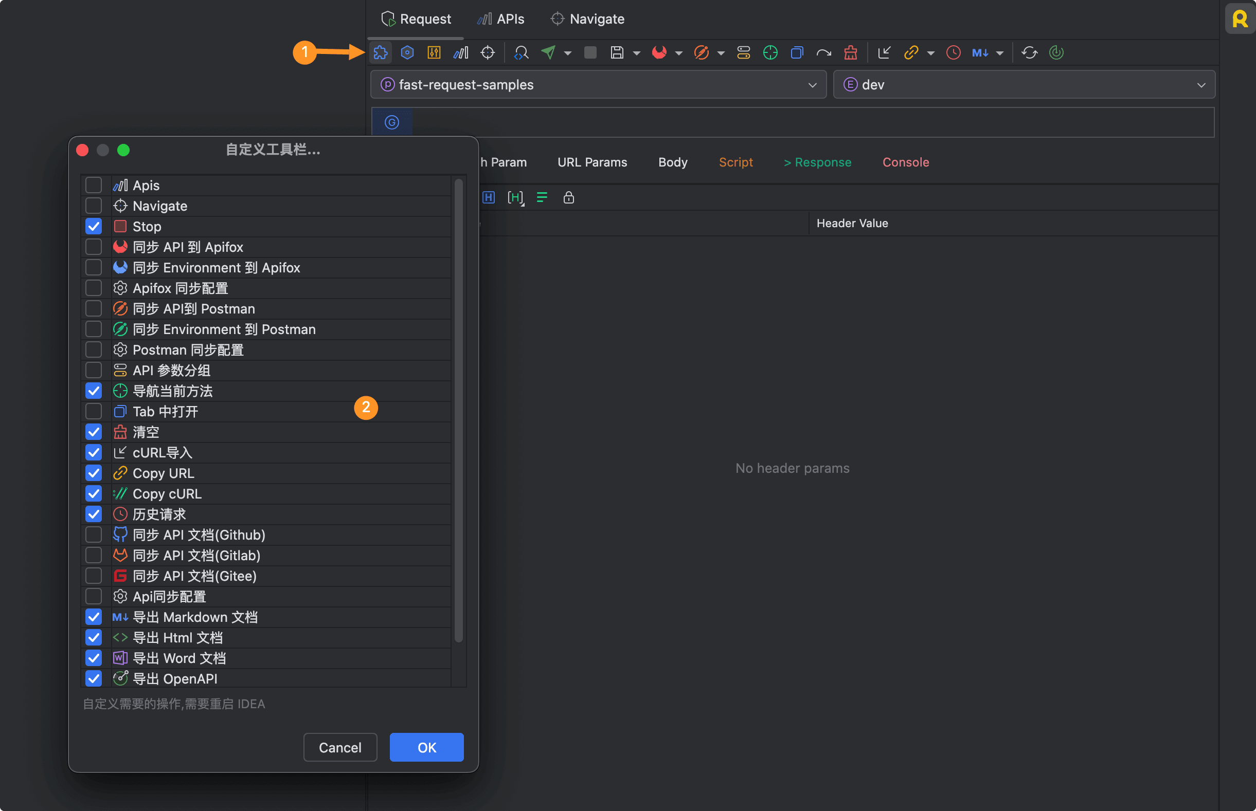 场景:SpringBoot等多模块项目不同项目、不同环境下头参数不同,为了快速自动切换headers,引入了header分组
